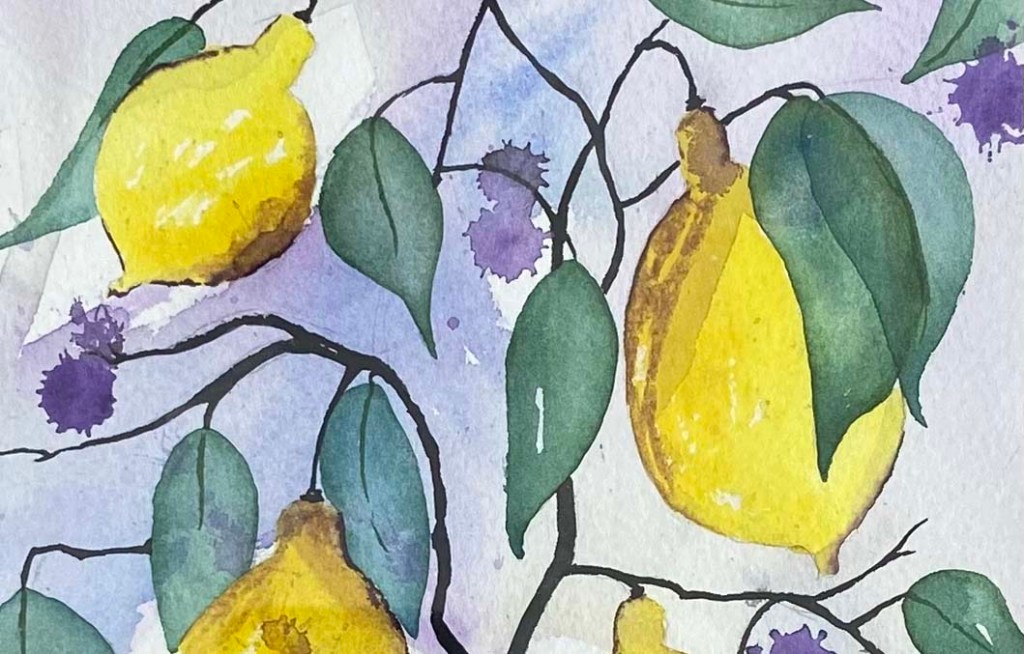 En värld av citroner i akvarell. Varje motiv är unikt och bär spår av, vattnets vilja och färgens nyanser.