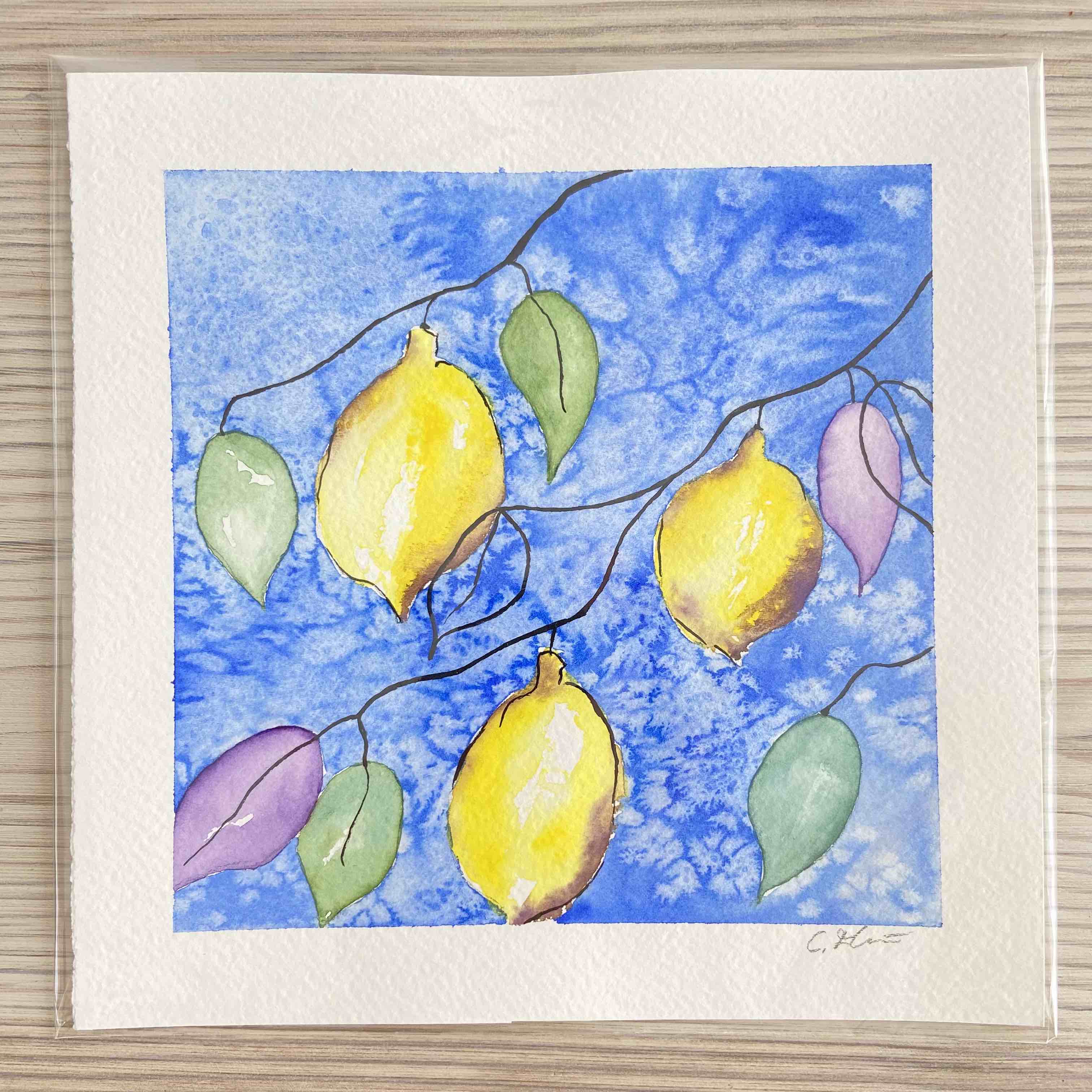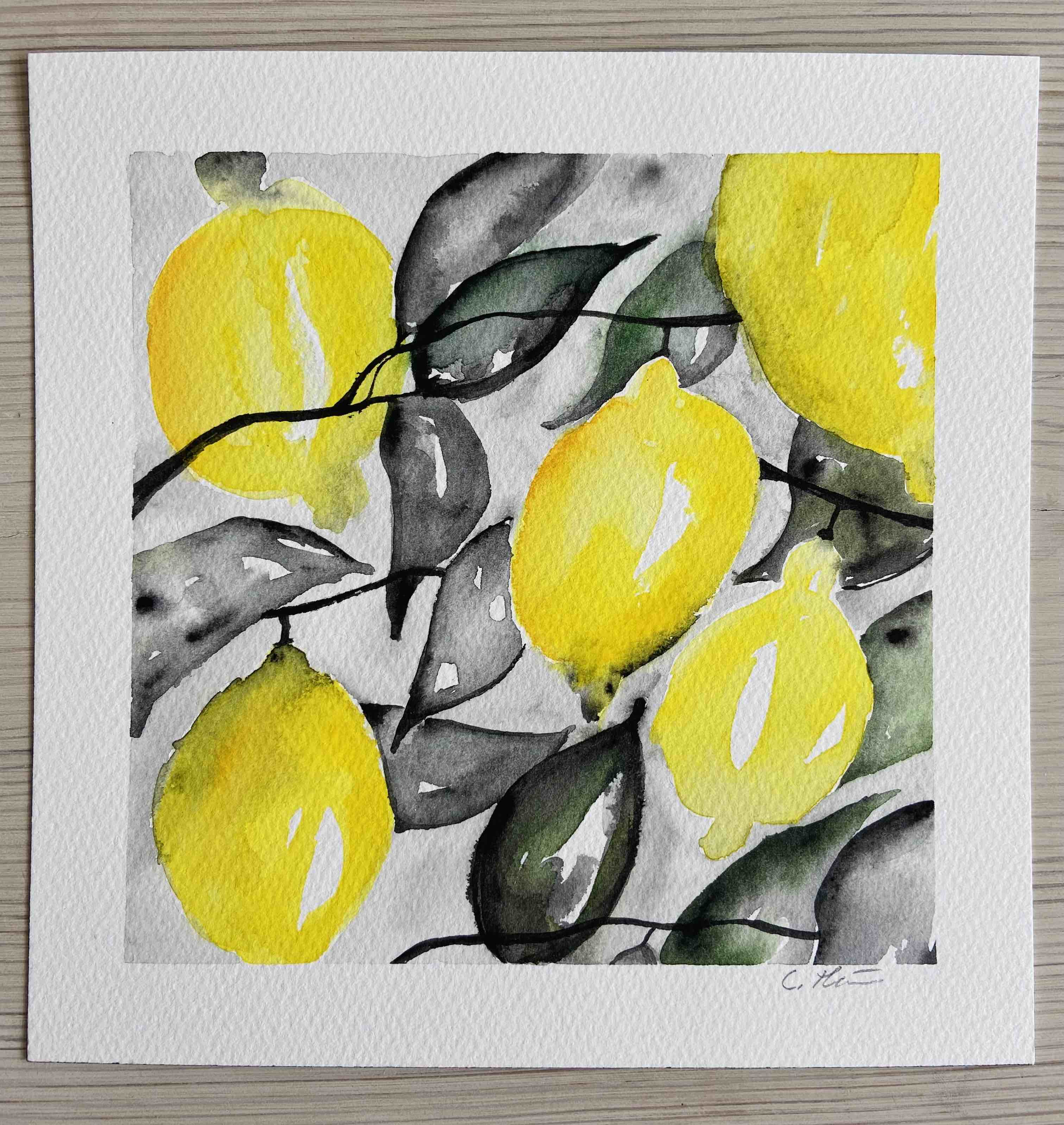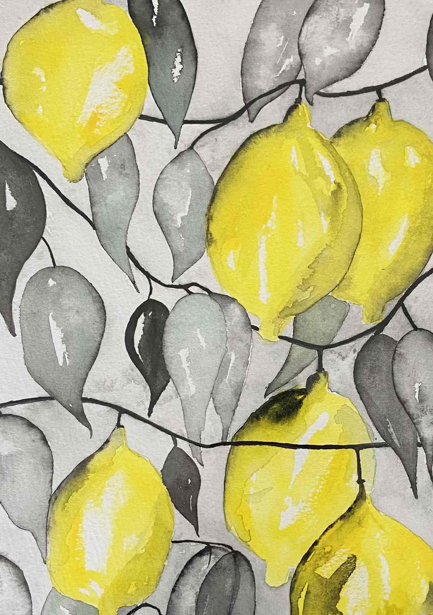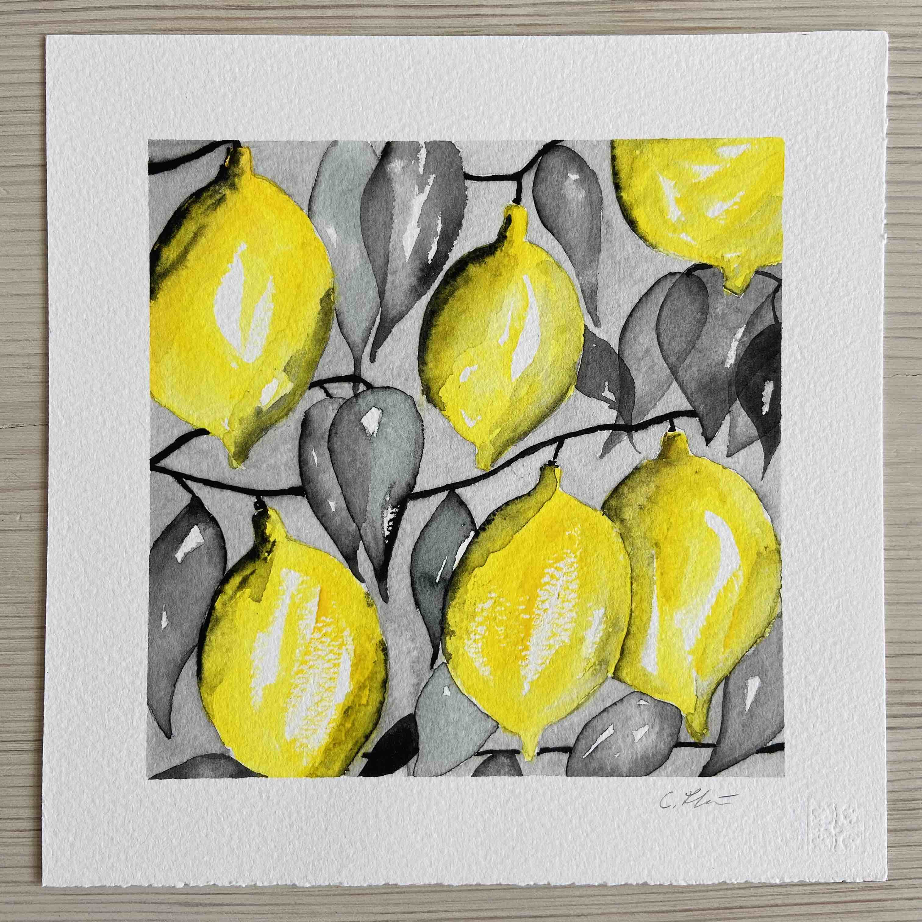 Här hittar du handmålade akvareller där citronen står i centrum. Varje motiv är unikt och bär spår av vattnets vilja och färgens nyanser. Är du intresserad av ett verk? Vänligen skicka ett mail till: