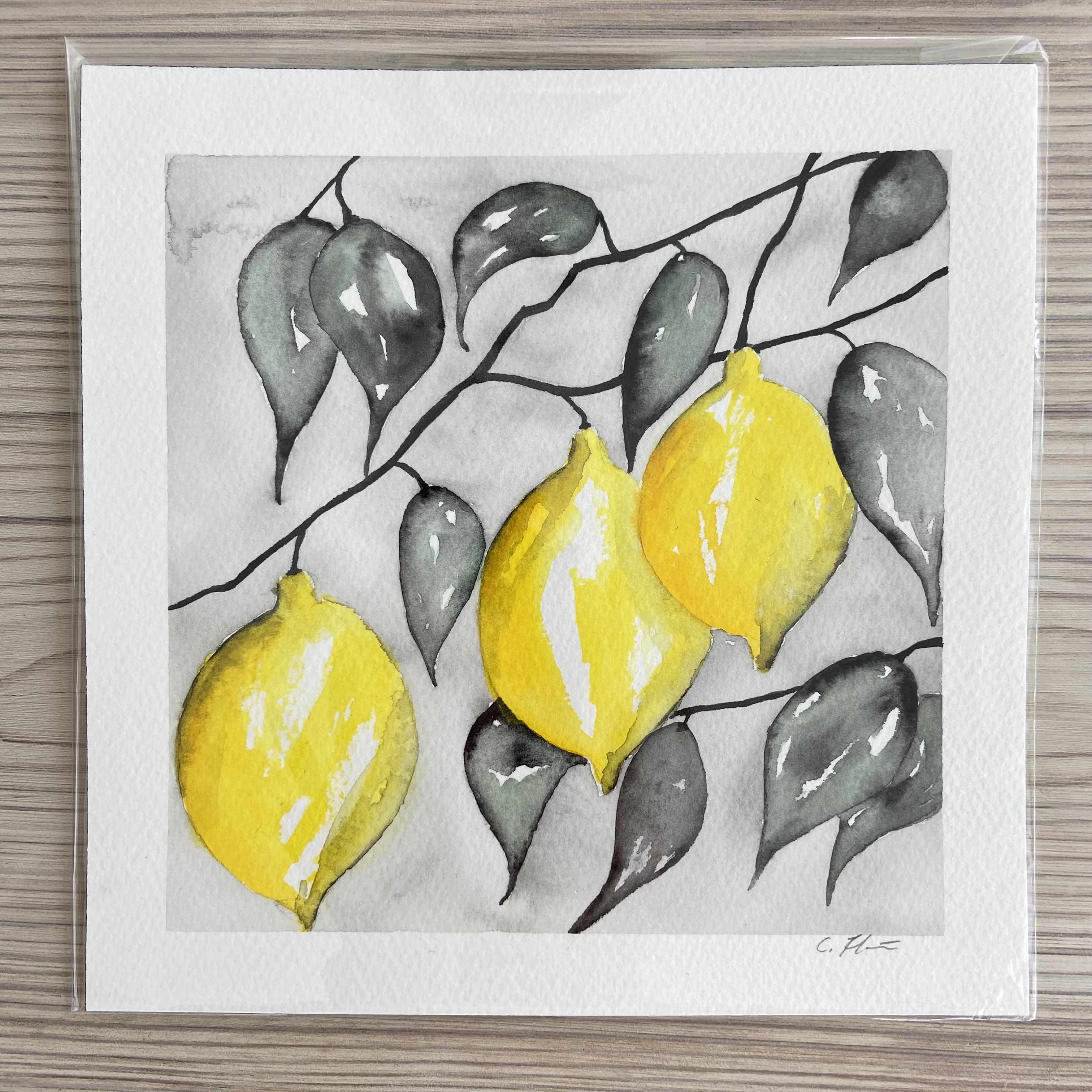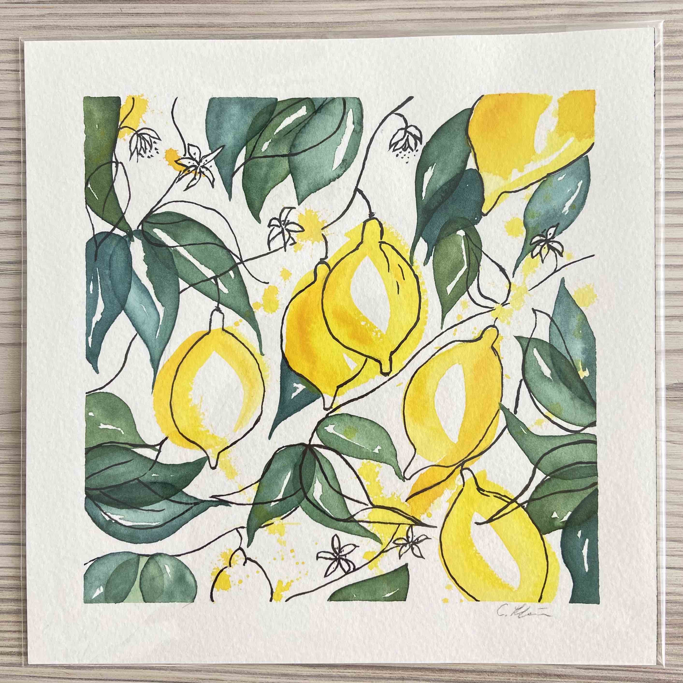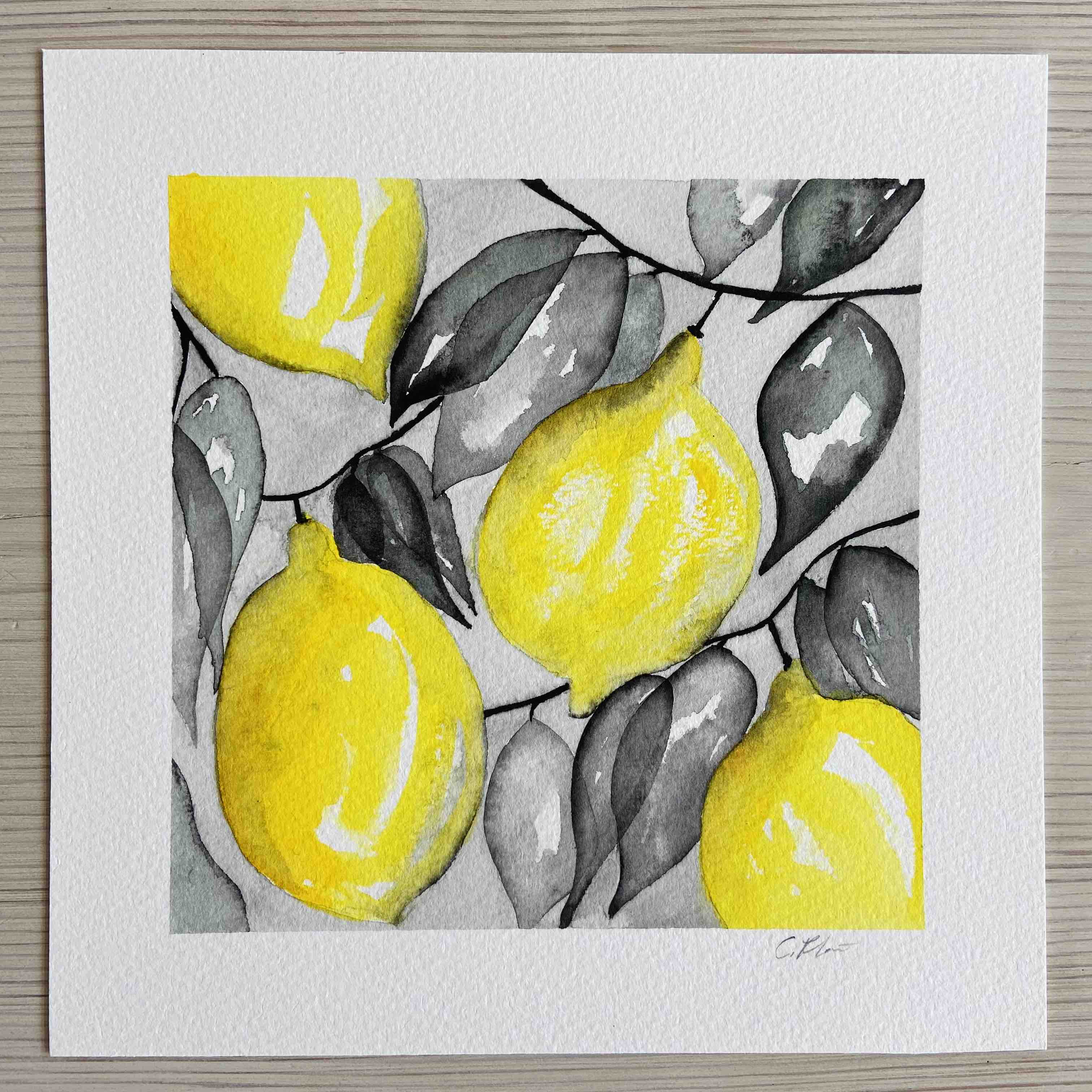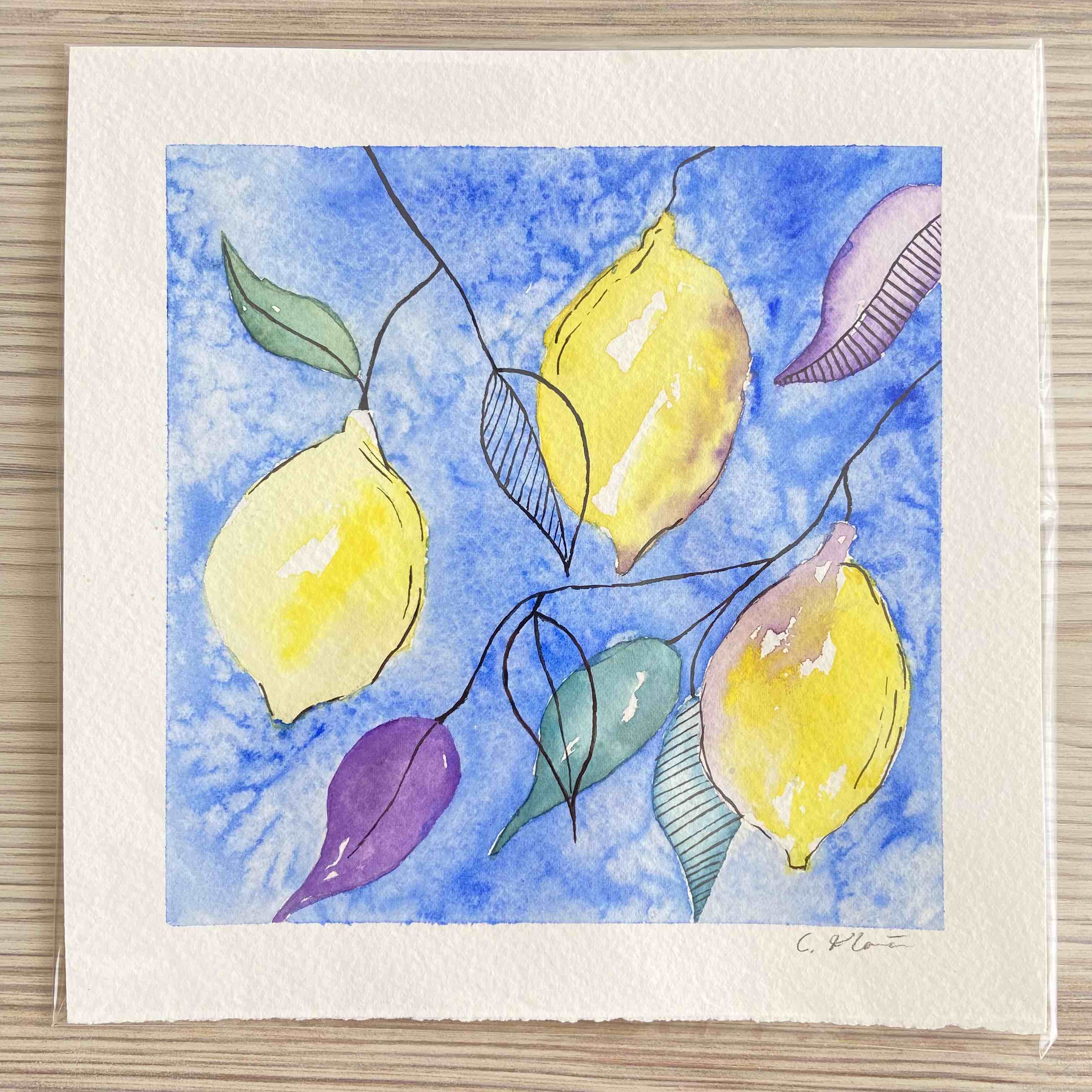 Här hittar du handmålade akvareller där citronen står i centrum. Varje motiv är unikt och bär spår av vattnets vilja och färgens nyanser. Är du intresserad av ett verk? Vänligen skicka ett mail till: