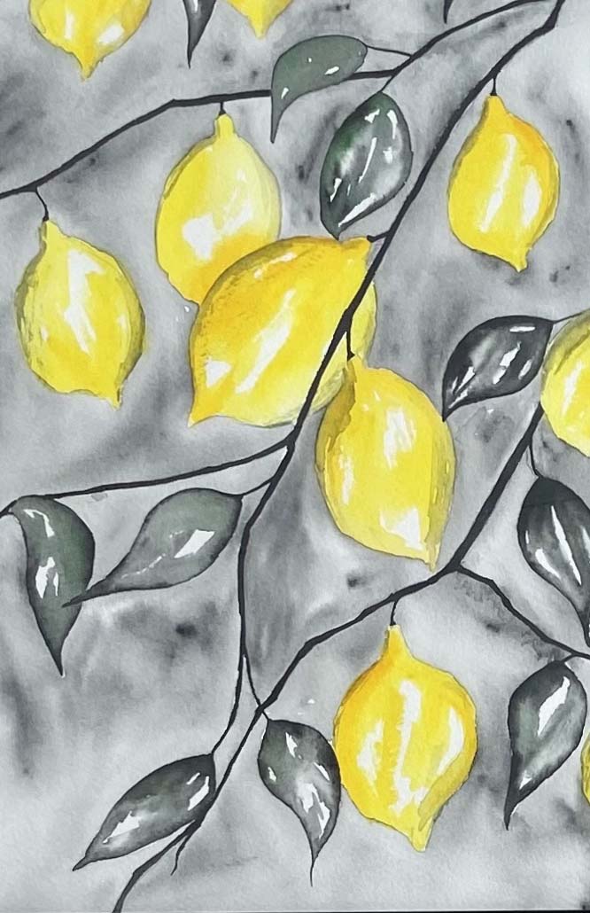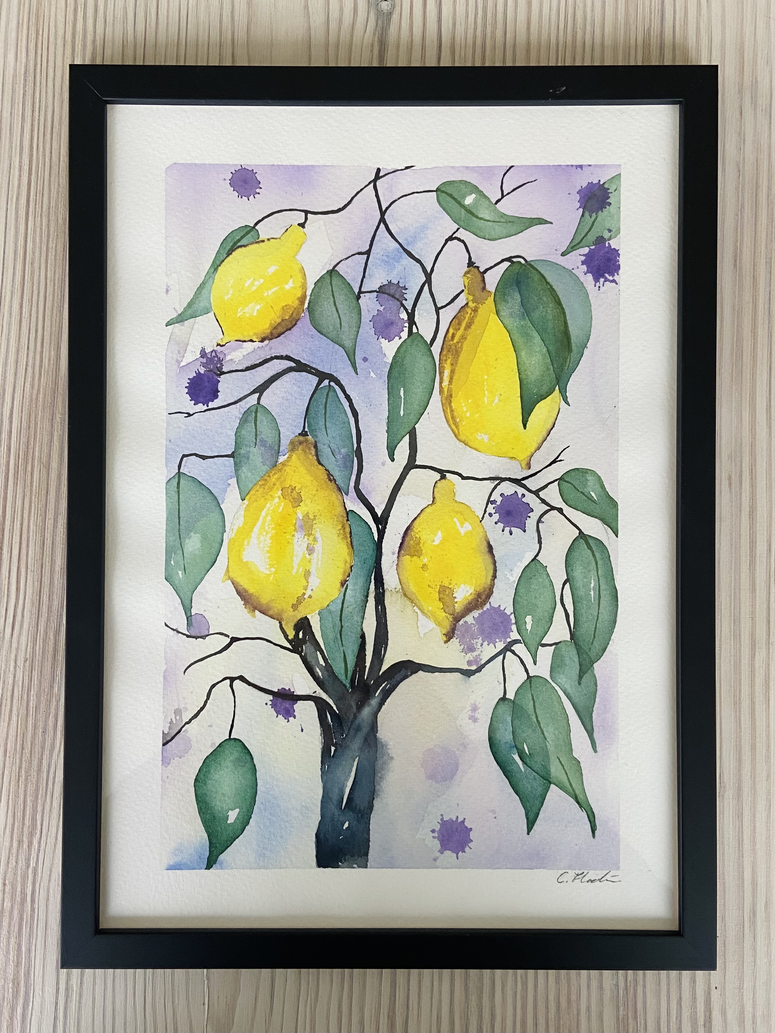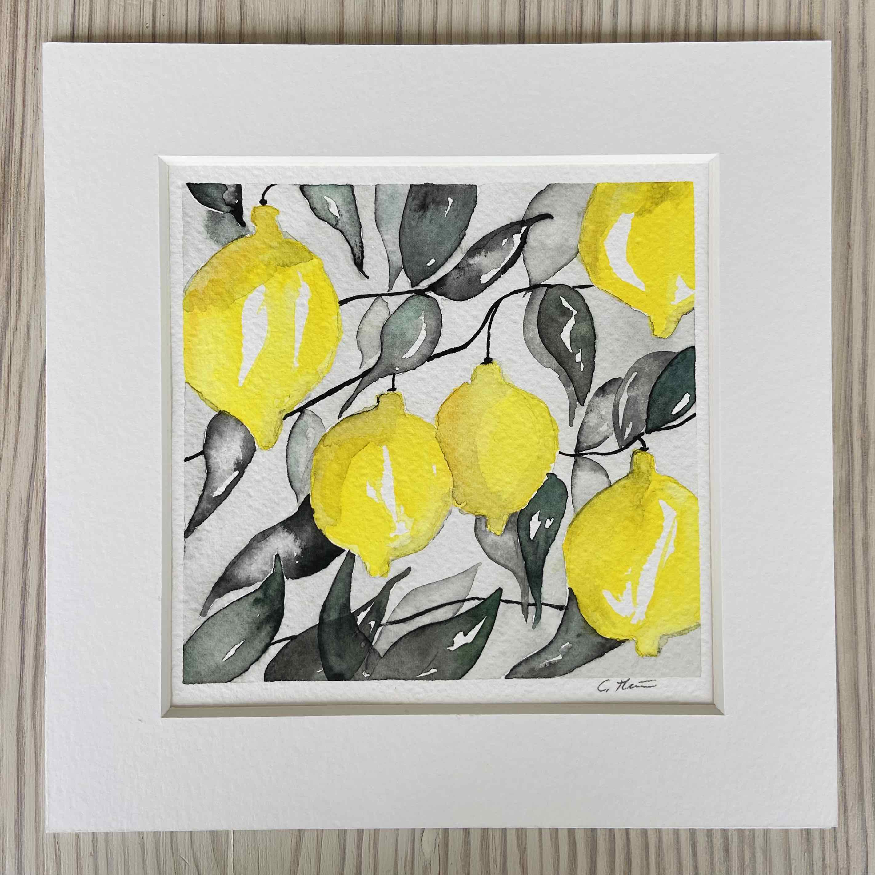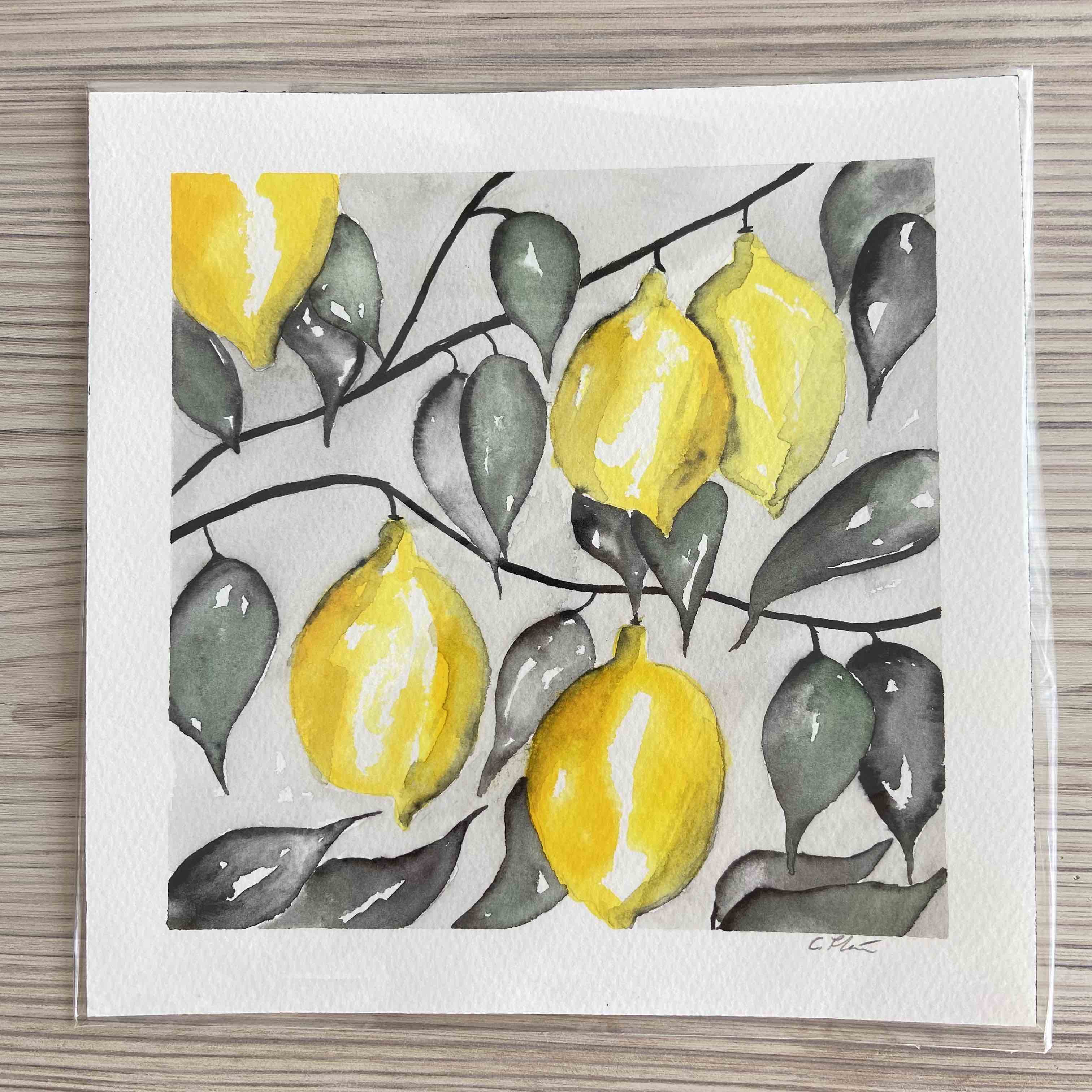 Här hittar du handmålade akvareller där citronen står i centrum. Varje motiv är unikt och bär spår av vattnets vilja och färgens nyanser. Är du intresserad av ett verk? Vänligen skicka ett mail till: